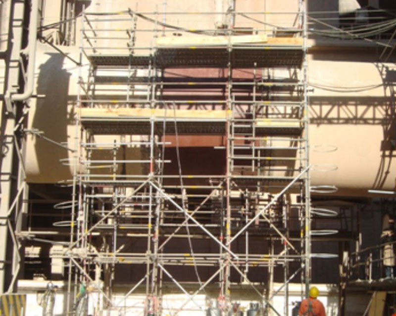 A Induscom loca e monta andaimes tubulares e de encaixe para manutenção e montagem de equipamentos industriais.